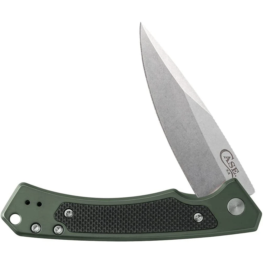 The Case OD Green Anodized Aluminum W/ Black G10 Inlay Marilla Knife features a single tough blade. The drop point blade is perfect for hunters, especially those who need to skin game. This blade shape is popular for everyday use, making this knife useful in and outside the house. Paired with a handle made of aluminum with a textured G10 inlay, this knife is strong and lightweight.Â
