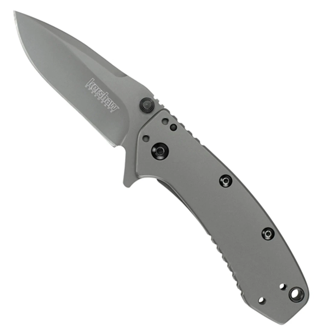The Kershaw Cryo II is a classic Rick Hinderer designed spring assisted knife. Built in pure steel with a matte grey titanium carbo-nitride coating on the blade and the handle, the Cryo II uses the SpeedSafe assisted opening system. You can open the blade with the built in flipper or the thumbstud and the blade snaps out fast and locks up with a sturdy framelock. The framelock has a lockbar stabilization ensures a solid lockup. This amazingly affordable Kershaw is destined to be the Hinderer for the rest of us.