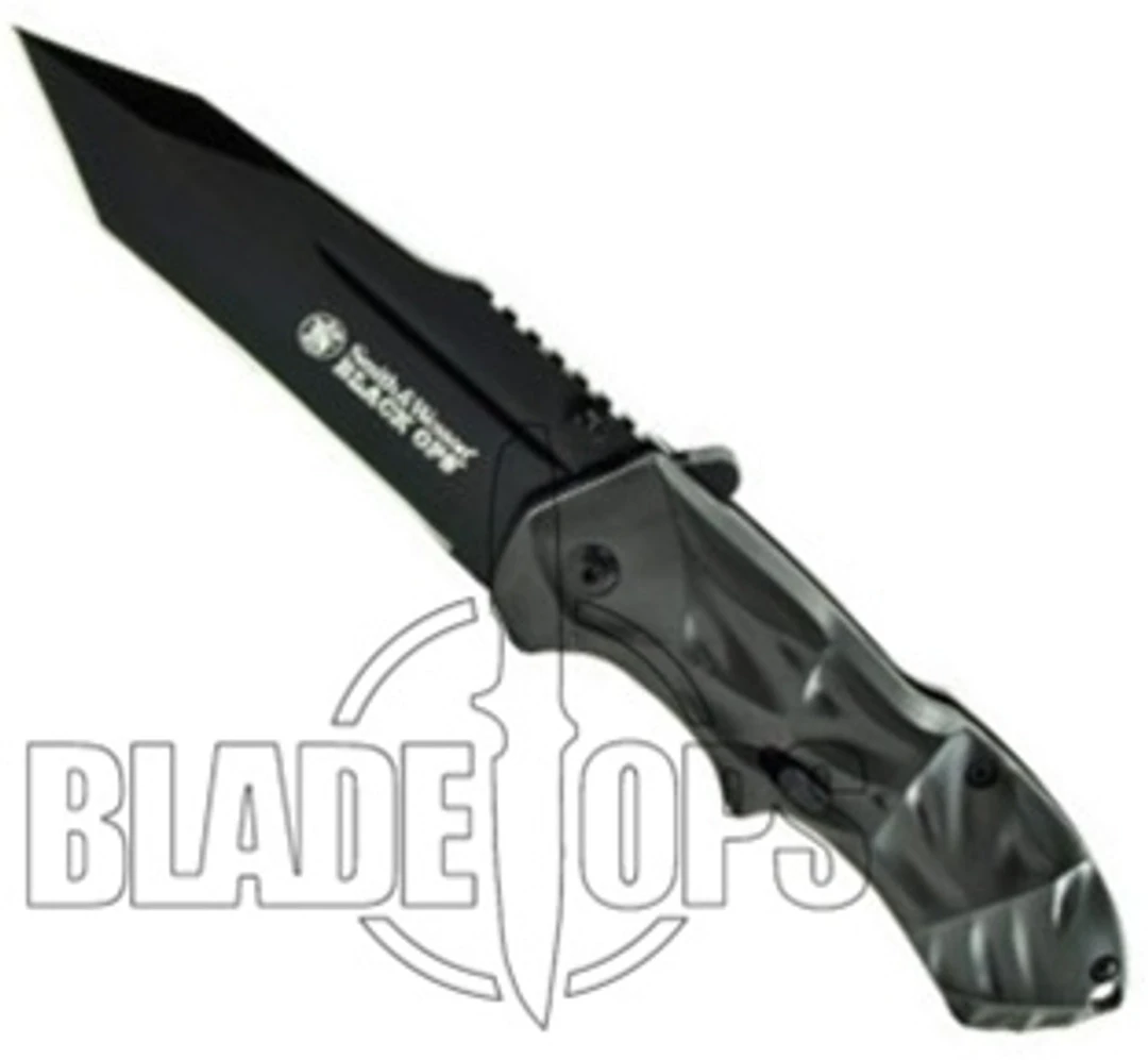 Smith & Wesson Small Black Ops Spring Assist Knife, Drop Point Combo Blade
