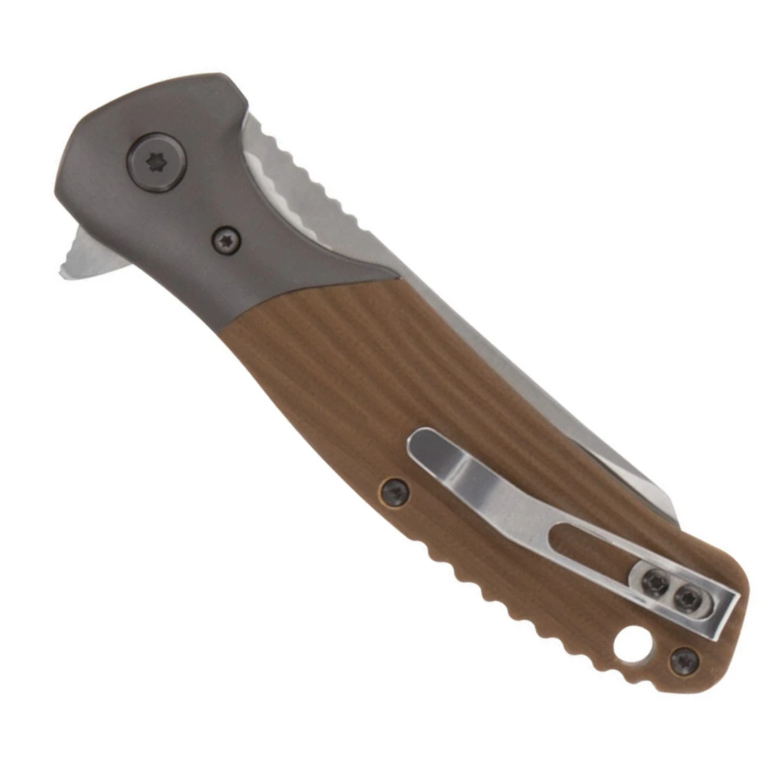 - Handle Material: Tan G10 w/Stainless Steel Bolsters