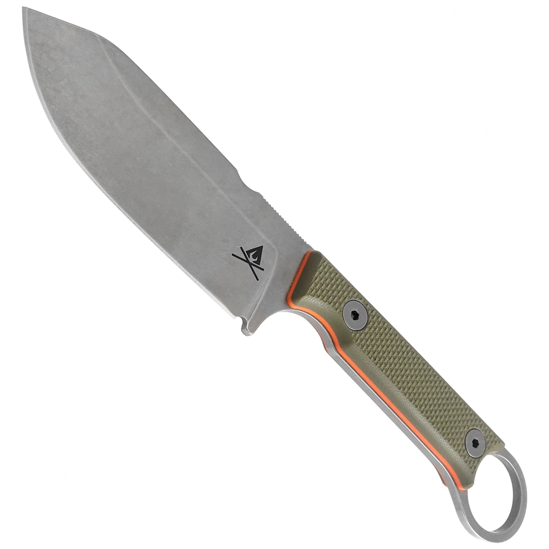 The White River Knives Firecraft FC3.5 Pro features pre-fastened, removable bolt-on textured Green G10 handle scales with Orange G10 Liners that deliver a rock-solid grip and maximum versatility.